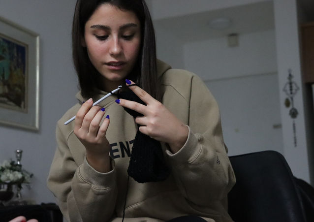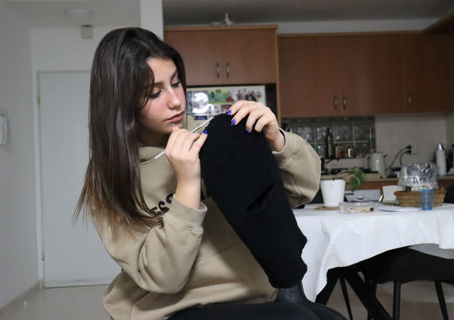בסט השני צילמתי ילדה עם סבתא שלה סורגות דברים למפונים.